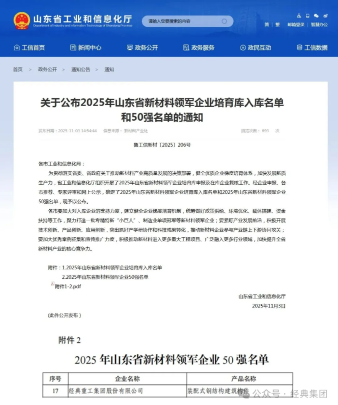再度登榜!經典集團入選2025山東新材料領軍企業(yè)50強