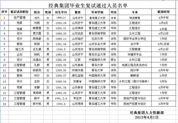 經典集團畢業生復試通過人員名單.xls