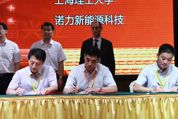 經典集團董事長苗樹文(中間)上海理工大學食品與醫療器械學院院長劉寶林(左一)共同出席首輪簽約儀式
