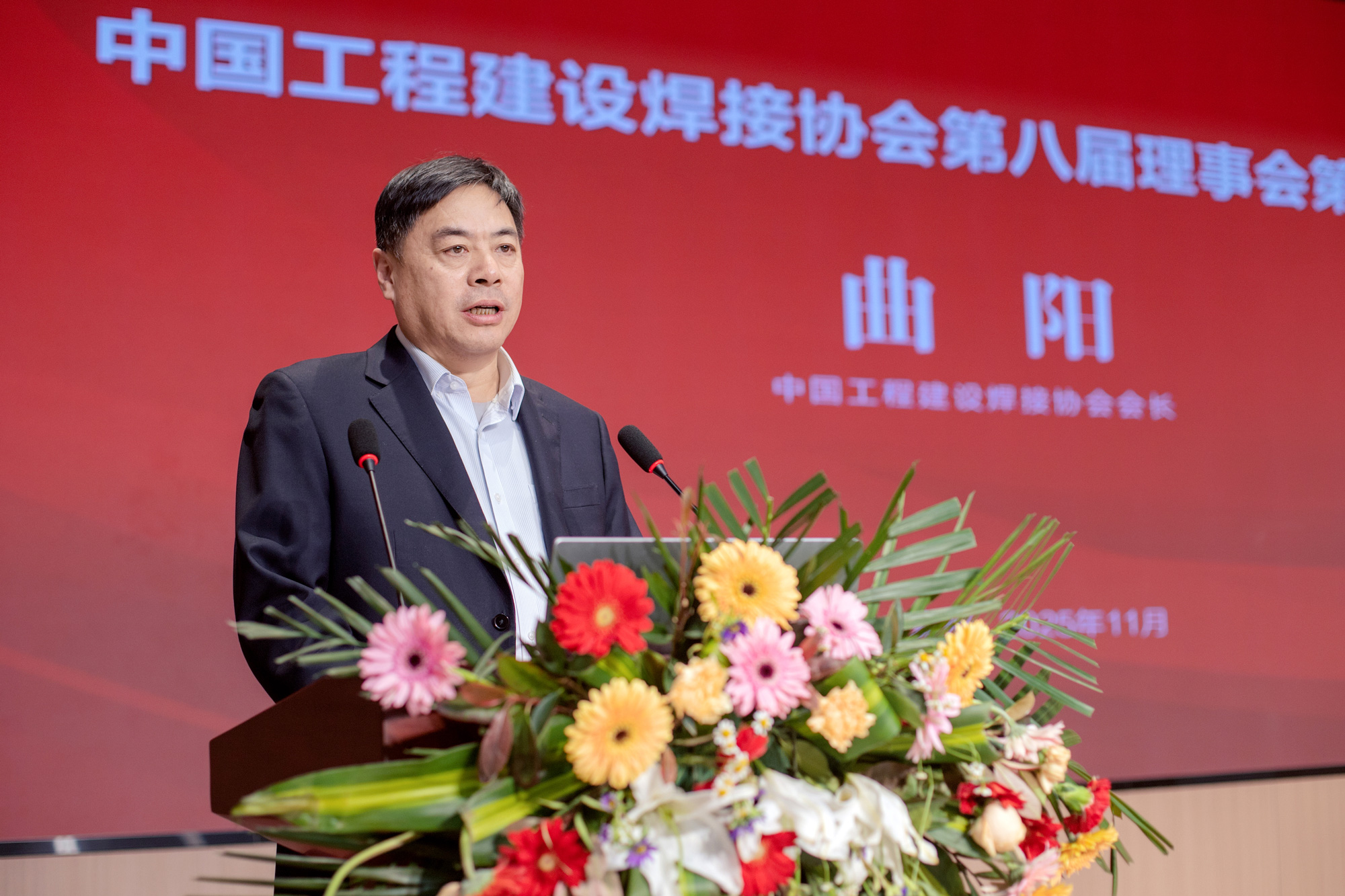 中國工程建設焊接協會會長、湖南有色金屬控股集團黨委書記、董事長曲陽作重要講話