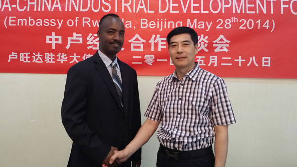 2014年5月27--28日,首屆“走進東非”——中盧(旺達)經貿合作洽談會(以下簡稱中盧經洽會)在北京盧旺達駐華大使館舉辦。本屆中盧經洽會是由中國信息協會民營企業分會與盧旺達共和國駐華大使館共同主辦。中國信息協會民營企業分會會長張鋁、中國信息協會會員與對外交流部主任王砥、中國外交部非洲司前司長,中國駐馬里,科特迪瓦前大使劉立德、中國外交部外交人員服務局前主任,中國駐湯加王國大使館前館長孫增森,盧旺達駐華大使查爾斯、經濟參贊盧文杰、盧旺達發展局駐華首席代表阿爾貝以及北京、山東、廣西、天津、深圳、河北等省市、自治區的民營企業家及社團組織負責人數十人出席了本屆中盧經洽會,山東經典集團董事長苗樹文應邀參加本次洽談會,并與盧旺達駐華大使查爾斯,盧旺達發展局駐華首席代表阿爾貝親切交談,并達成合作意向。