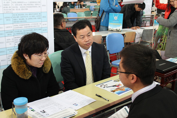 3月28日,繼青島理工大學2013年春季畢業生雙選會結束后,經典集團又一次組織參加中國海洋大學畢業生雙選會。我公司董事長苗樹文,總經理杜福生等領導一同參加了此次雙選會。